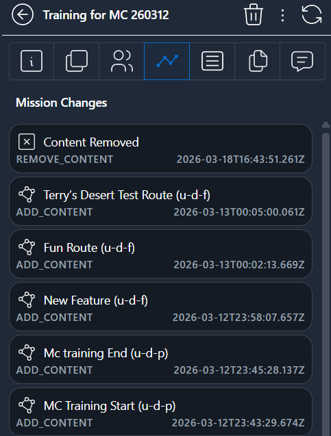 Changes: Displays a log of all added and deleted features, including the date and time the change was made.