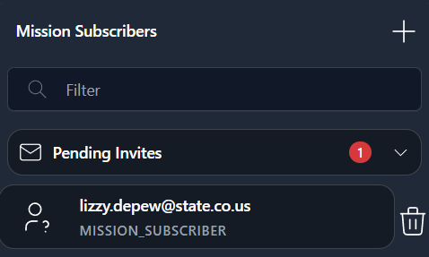 Users: Displays all users subscribed to this Data Sync. Click the plus button to send users a request to join Data Sync.