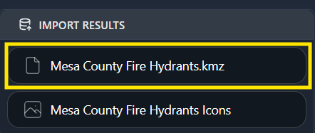 This will allow you to import all features in the data package. If the data package has a file such as a kmz attached, you will need to select the file under "IMPORT RESULTS." This will add the file to your overlays.