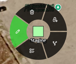 Draw Line: Place points on the map to create a straight line between them. Double click to finish the line. Clicking on the finished line gives you access to the same radial menu as for markers. The Edit button allows you to add accuracy.