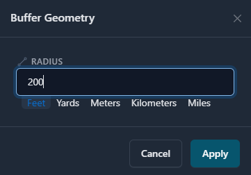 Open Buffer Geometry Tool. This allows you to create a perimeter with a radius of a specified distance around your point.