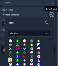 Draw Point: Opens a window with 5 different points to choose from. Select the desired icon then click on the map to drop the point. Click on the point to access the radial menu.
