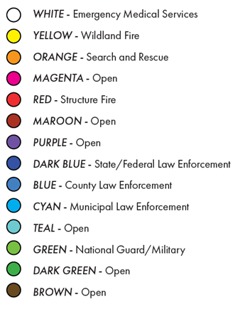 We recommend using the callsign convention [agency acronym] [last name] and [radio callsign]. Next decide which color your marker will show as on the map. View this table to see which color you should choose.